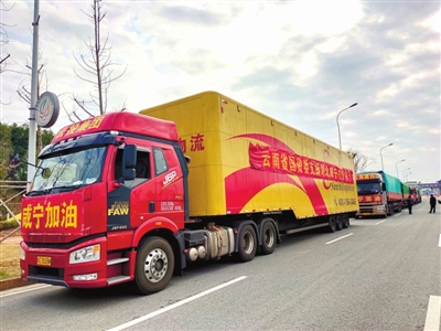 2月21日,3辆载有云南省元谋县当地黄瓜、丝瓜、紫甘蓝的卡车,在历经30多个小时后抵达嘉鱼。