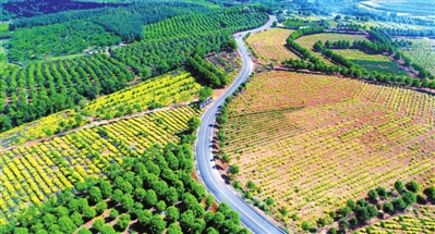 这是富民强镇的产业之路。美丽的农村公路串起一处处茶山、药材基地、蔬菜大棚,连通镇村工业园区和农旅景区,现代观光农业在路边聚合成产业带,一二三产业在路边融合成产业链;
