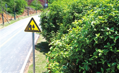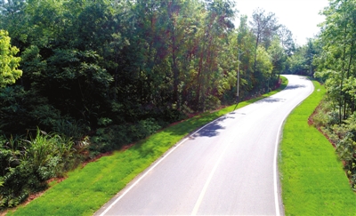 这是畅安舒美的示范之路。黑色的路面,红色的路肩,墨绿的护栏,黄白相间的标线,还有孑然屹立的路牌、路灯,供人驻足休憩的小游园,设施一应俱全,环境美仑美奂;