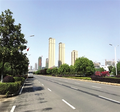 两旁的行道树,新叶翠绿、生机盎然,光洁得就像被水洗过一样;路边的人行道,干净清爽、无灰无尘,连落叶都难找到一片。更不用说,道路中间,车来车往,只见奔跑车影,不见尘土颗粒。