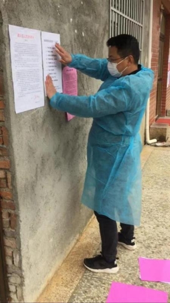 1月30日中午,傅韬锋拿到防疫物资便立即送到高桥村。入村后,他马不停蹄开展防疫工作。通过村级党员微信群、喇叭巡回、悬挂横幅、张贴标语、入户宣传等,劝导村民们勤洗手、戴口罩,不聚会、不串门。加大对武汉返乡人员再排查力度,及时建立信息台账进行居家隔离观察,同时加强值守,增设卡点,与村两委一道在防疫一线积极防控。