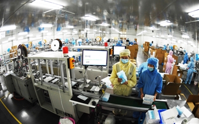 15日,金士达医疗(咸宁)有限公司员工在生产线上忙碌。为提高市场竞争力,公司投资2000多万元进行技改升级,将6000平方米厂房改造成防护服生产车间,新增贴胶机、口罩机、灭菌包装机120余台套。目前,公司日生产口罩200万只,医用防护服10000套,预计实现年产值8亿元。