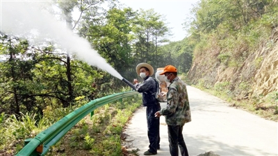 连日来,通山县林业局抢抓晴好天气,深入国有石航山林场、凤池山林场等地,积极开展银杏大蚕蛾防治工作,共使用粉剂650千克,防治面积1300余亩。通讯员 阮建军袁忠生 阮金华 摄