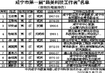 | 咸宁市第一届“最美科技工作者”名单公示 |