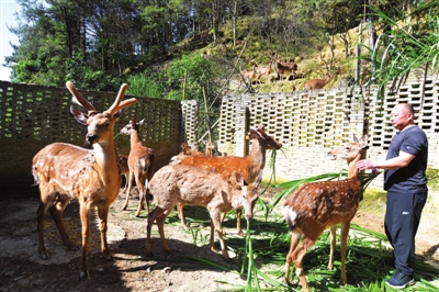 基地负责人黄金雨2017年赴吉林考察学习,并购回20头梅花鹿。2019年获得鹿场繁育许可证。目前基地已有40多头梅花鹿,年产鹿茸一百余斤,销量不愁。