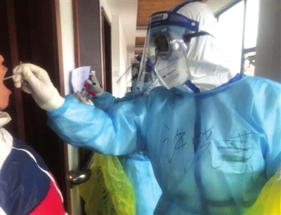 咽拭子采样,是核酸检测前的一项重要工作。“记忆最深刻的一次,我在高危风险区,采集一位精神病人,担心他随时会失控,我以最快的速度用无菌拭子在他的双咽侧扁桃体及咽后壁反复擦拭,留取标本。谁知,他突感不适,对着我剧烈咳嗽,当时感到大量飞沫直扑过来,让我惊慌失措。不过,短短几秒钟,我迅速调整,使命感战胜了恐惧。”市疾控中心采样组成员杜瑜荣说。