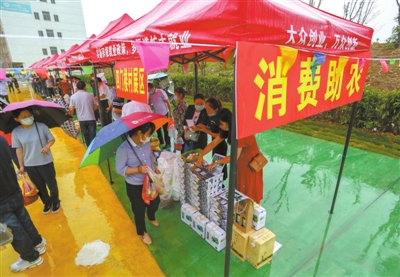 5月29日,咸安区马桥镇为当地13个村的62户建档立卡贫困户举办消费扶贫“赶集”活动,现场销售禽蛋类、时令蔬菜(黄瓜、苋菜、藕带)、菜籽油、干货(梅干菜、红薯粉、红薯粉条)、水果(蓝莓、李子)、小龙虾等20多个品种的农副产品,当天共计销售收入19.7万元。
