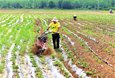 5月22日,赤壁市官塘驿镇龙凤山村益亩田农业发展有限公司蔬菜基地,当地农户正在地里劳作。