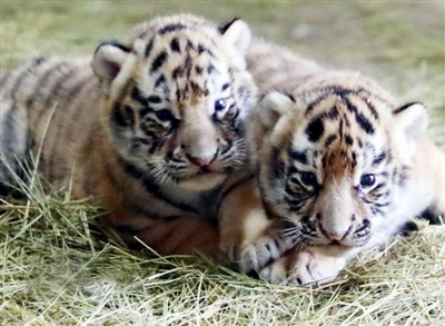 6月3日,江苏省苏州市动物园一对东北虎双胞胎幼仔正在笼舍内玩耍。据悉,苏州市动物园的一只6岁雌性东北虎于5月3日自然分娩产下这对双胞胎幼仔。