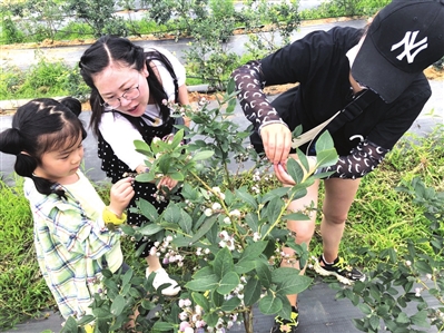 5月31日,赤壁市神山镇文清村正农果业农民专业合作社的基地里,游客在采摘蓝莓。该合作社现有社员12家,种植了猕猴桃、杨梅、樱桃、蓝莓、葡萄、黄桃、枇杷等精品水果1500亩,正在打造集果品生产、休闲旅游、观光体验于一体的特色农业产业观光园。目前一期已建成,成为游客的热门打卡地。 咸宁日报全媒体记者 镇强 摄