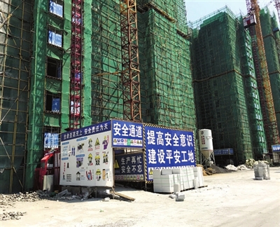 6月8日上午,来到位于城铁高架桥旁的名仕学府项目建筑工地,一眼就被齐整矗立的绿色围挡吸引住目光。