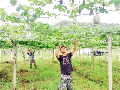 今年34岁的刘正源,2014年成为建档立卡贫困户,在村副主任曾庆武带动下种植吊瓜62亩,不仅成为了咸宁市脱贫之星,还带动吸引10余个村民和贫困户在基地务工。