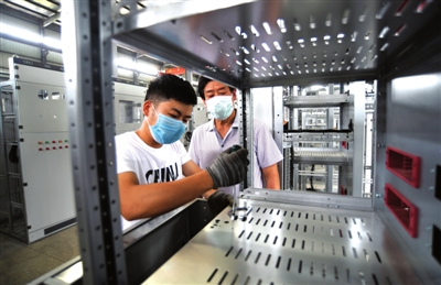 6月4日,嘉鱼县经济开发区内,湖北中诚电气有限公司生产车间里,员工在赶制一批箱式配电柜。