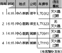 6月15日,市客管处在市中心医院出租车候客点对城区三家出租车企业的出租车开展车载安全设备检查,经检查,发现部分出租车车载灭火器不符合规定,有的使用期限过期,有的未配备车载灭火器。现公布如下:
