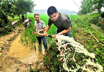昨日,崇阳县路口镇白羊村干群抢排农田渍水。图③