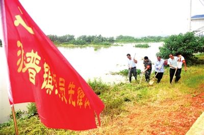 连日来,嘉鱼县渡普镇大路铺村干群在东湖围堤不间断巡堤查险。