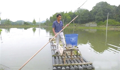 刚吃过午饭,杨陆君就来到自己的鱼塘开始劳动,再过两天,池塘的鱼就要开始捕捞了。