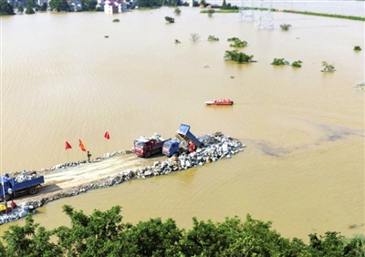 险情发生后,中国安能第二工程局迅速从江西南昌、江苏常州、福建厦门调集400余名抢险人员、52台套装备星夜驰援鄱阳县抗洪。