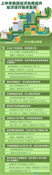 上半年,国内生产总值同比下降1.6%。一季度同比下降6.8%的情况下,二季度同比增长3.2%,实现强势“转正”。从环比看,二季度国内生产总值增长了11.5%。这一成绩来之不易,彰显中国经济稳步复苏的力量。