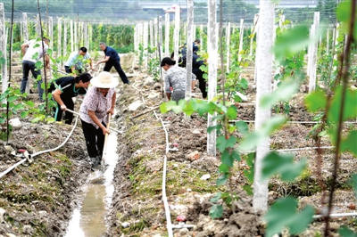 20日,崇阳县路口镇洋港村葡萄基地,干部群众正在合力清沟排渍。本月上旬,崇阳县遭受暴雨袭击,给当地农业生产带来较大损失。眼下,该县各地抢抓当前晴好天气,组织干部群众深入田间地头,对受灾水稻、蔬菜、瓜果等农作物开展生产自救,争取把受灾损失降到最低。