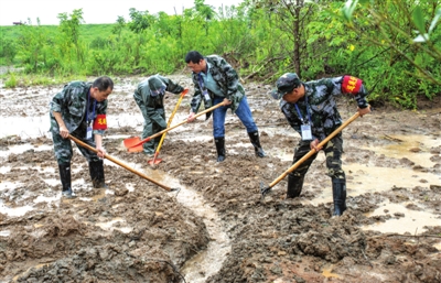 | 雨中巡查长江干堤 |