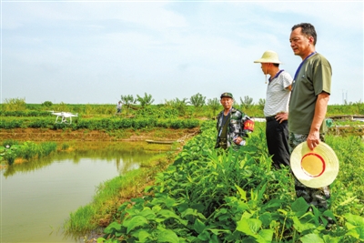 7月29日,在赤壁黄盖湖长江干堤1号哨所,防汛人员用无人机巡查汛情。无人机观察角度范围广,对人员不易到达的地方更是效果明显,形成人机协同巡堤查险新模式。