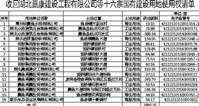 附:收回湖北嘉康建设工程有限公司等十六宗国有建设用地使用权清单