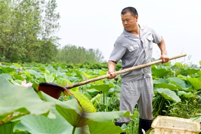 3日,嘉鱼县陆溪镇界石村鸭儿湖养殖专业合作社,负责人龚木前在野藕基地进行生产自救。