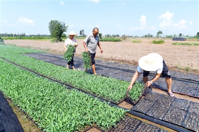 5日,嘉鱼县渡普镇蒲圻湖村三组,胡凯蔬菜专业合作社育苗基地,村民在移栽秋甜玉米苗。