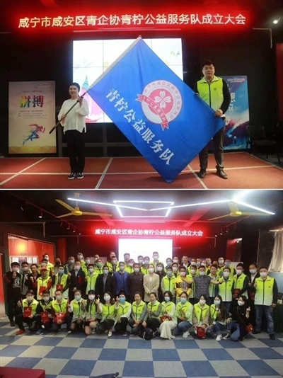1月19日,区青企协举行年终表彰大会,大家给协会志愿队伍取名为青柠,在会上便募捐到了10万余元爱心款。