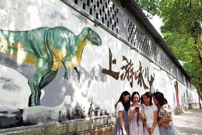 2020年8月3日,市民在重庆市永川区南大街街道小桥子社区新泰路沿线“上游永川龙”、“宝峰龙”、“巨型永川龙”以及“功夫熊猫”3D艺术墙绘前留影,该处已成为新的网红打卡点。