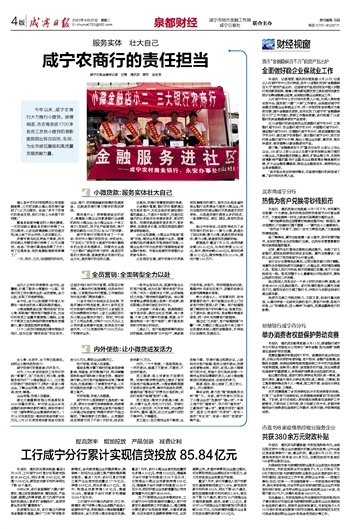 工行咸宁分行累计实现信贷投放85.84亿元