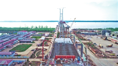 目前,施工人员正按照“时保天,天保周,周保月,月保年”的施工计划,追赶工期,确保2021年春节前钢梁合龙、全桥贯通。