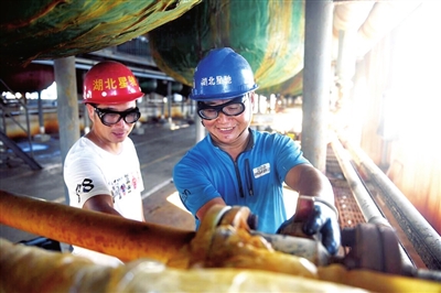 8月19日,嘉鱼县潘家湾镇四邑新村村民罗仲清在范湖工业园星驰科技股份有限公司生产线上忙碌(右图)。现年54岁的罗仲清,2012年底在当地企业家周明炎帮助下,住进了四邑新村宽敞明亮的新房。去年他通过村干部介绍,来到星驰科技从事灌装工作,月收入达到3500元,喜悦之情溢于言表。