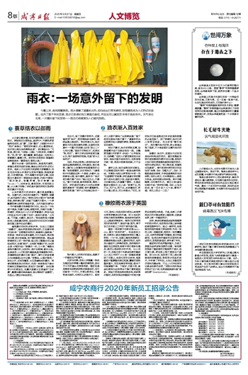 今夏以来,各地频繁降雨。雨水缓解了盛夏的炎热,但也给出行带来麻烦,防雨避雨成为人们热议的话题。经历了数千年的发展,雨衣已变得时尚又兼具功能性,并且还可以解放双手用于其他劳作。天气变化无常,一次意外留下的发明——雨衣仍将继续为人们遮风挡雨。