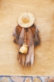 以后历朝历代的诗词中,蓑衣更是频繁出现。如唐代诗人张志和《渔歌子》:“青箬笠、绿蓑衣,斜风细雨不须归。”柳宗元的《江雪》中“孤舟蓑笠翁,独钓寒江雪”,刻画了在漫天大雪中,一个穿戴蓑笠寒江独钓的渔翁形象。北齐刘昼在《新论》一书中曾将蓑衣和裘服进行对比,他认为:“今处绣户洞房,则蓑不如裘;被雪沐雨,则裘不如蓑。”明清时,雨季出行人们大多带着蓑衣,明徐光启《农政全书》中记载了当时一条流行谚语:“上风皇,下风隘,无蓑衣,莫出外。”现在虽然很少能看到有人身披蓑衣防雨,但在农村仍可见作为饰物挂在墙上留作纪念的蓑衣。