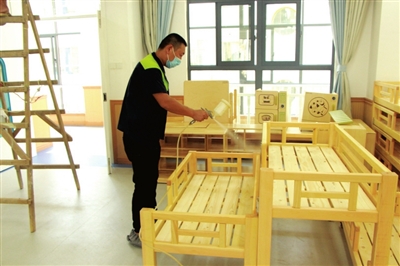28日下午,记者探访咸宁市直机关幼儿园。相关负责人介绍,全园室内户外所有区域已聘请专业人员,进行全面、无死角清扫消杀4次。