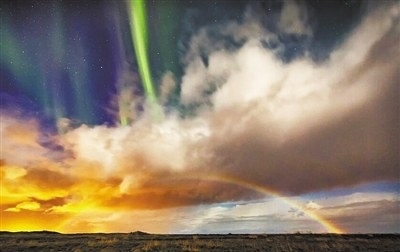 | 北极光与彩虹空中齐舞 |
