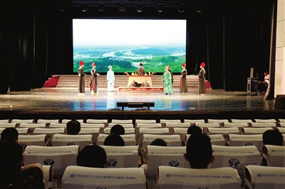 图为8月14月,崇阳县纪委监委联合县提琴戏剧团推出的新编廉政提琴戏《一钱斩吏》演出现场。
