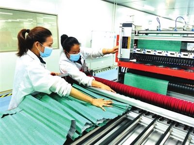 近日,笔者在嘉鱼经济开发区的环保健康产业园中的嘉鱼玛赛托恩新风科技滤网生产车间看到,生产设备摆放得整齐划一,数余名工人正一丝不苟地操作着设备,完整工序生产流水线正在加紧生产,车间里呈现出一派忙碌的景象。