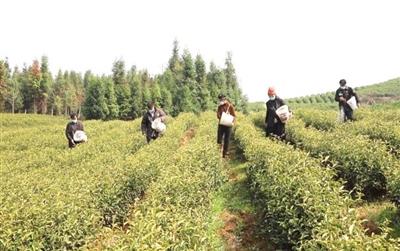 “空闲时间,我们都在这做工,一天能拿100元。”在铜钟乡绿谷茶叶专业合作社,来自铜钟村的村民覃凤萍告诉记者。每年,茶叶基地不仅付工资雇当地老百姓管理茶园,而且采茶的时候,每斤也根据市场行情给予20至25元报酬,一年下来人均可增收一两万元。