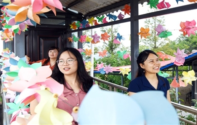 8月29日,在咸安区大幕乡白云山高山休闲养生体验区,游客置身于白云山公路驿站的观景平台,呼吸清新空气,近观幽幽竹林沁人心脾,远眺山岚叠嶂满目苍翠。