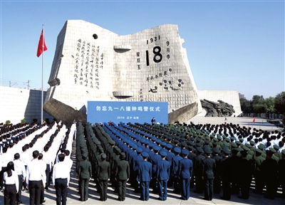 辽宁沈阳,“九·一八”历史博物馆外,一座布满累累弹痕的“残历碑”,将历史永远定格——1931年9月18日。