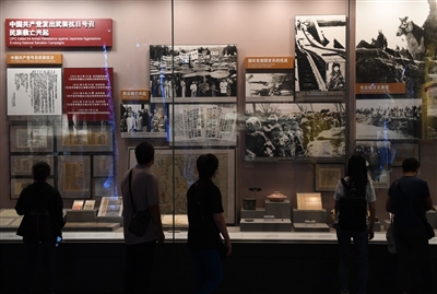 9月3日,市民在中国人民抗日战争纪念馆内参观展览。