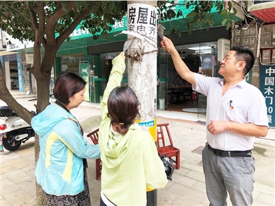 活动现场,党员们分工协作、干劲十足。有的拿起小铲子、钢丝球,对着绿化树木、电线杆、建筑物外墙上张贴的“小广告”用力擦蹭;有的拿起扫帚、撮箕,清扫街面的落叶、塑料袋;有的拿起火钳,拾拣藏匿在角落里的烟头、小包装袋、废纸屑。在美化环境的同时,党员们还与街边店主、过往行人沟通交流,倡议全员行动起来,不乱张贴小广告、不随地吐痰、不乱扔垃圾,为创建文明城市贡献出自己的一份力量。经过一个多小时的辛勤劳动,共铲除“小广告”20余块,清扫路面900余平方米。 (通讯员 谭昊)