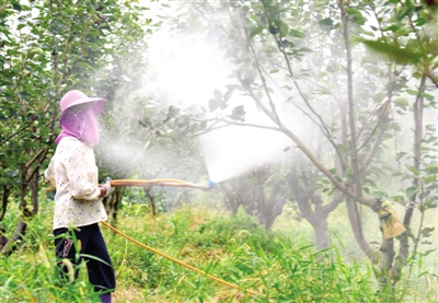 1日,崇阳县石城镇汉兴村跑马岭的翠玉梨基地,果农对采收后的梨树进行及时喷药。