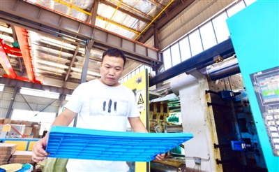 8月21日,市高新区象群咸宁科技有限公司车间,工人们正在调试新机器,查看新产品质量。
