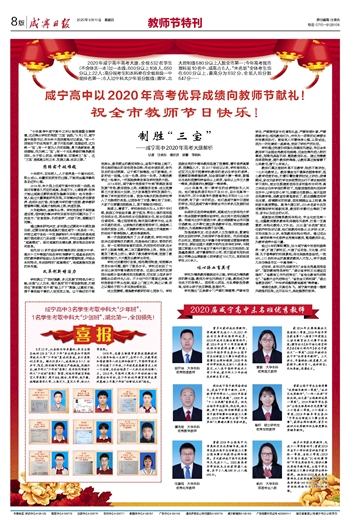 咸宁高中以2020年高考优异成绩向教师节献礼!祝全市教师节日快乐!