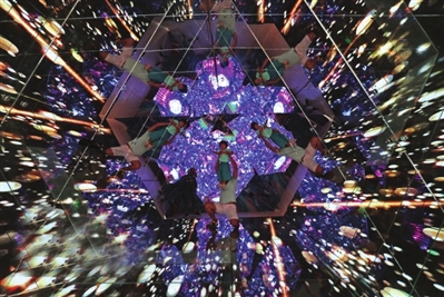 位于上海市南京路的网红打卡地独角兽星空艺术馆升级了浪漫神奇的镜像视效空间,游客宛如置身宇宙。展馆有浩瀚星河、明灯三千等20余个梦幻场景,运用镜子装置结合光影特效,打造出360度沉浸式体验。