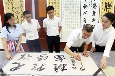 近日,通山县组织党员干部深入开展廉政教育“六廉”活动,通过“写廉政字、读廉政书、答廉政题、看廉政片、讲廉政课、诵廉政诗歌”,进一步增强廉政教育的感染力和实效性,不断提高了党员干部的拒腐防变能力。图为县组工干部在开展廉政教育“六廉”活动。